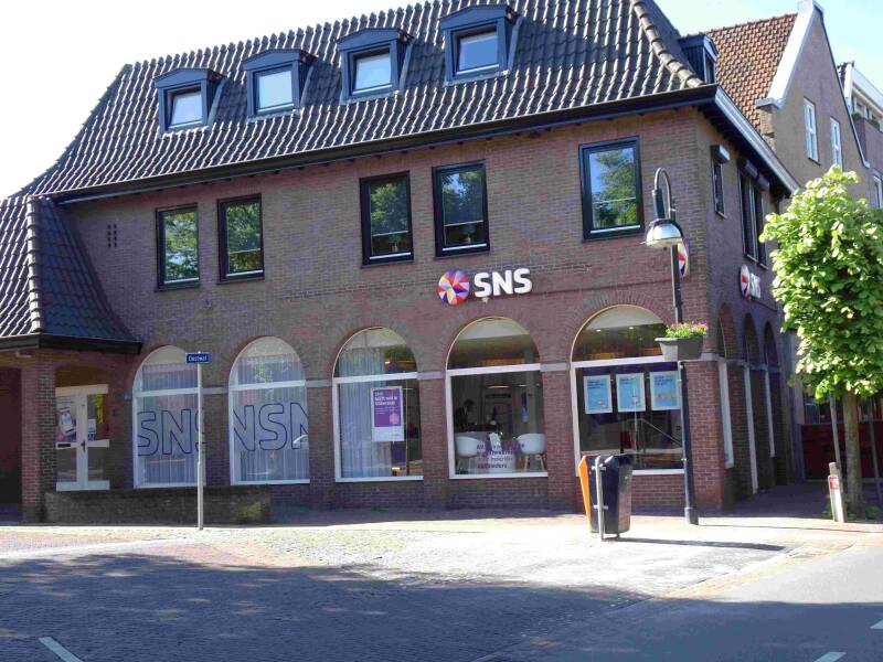 In de voormalige modezaak van Reuver-Spit is nu de SNS bank gevestigd.