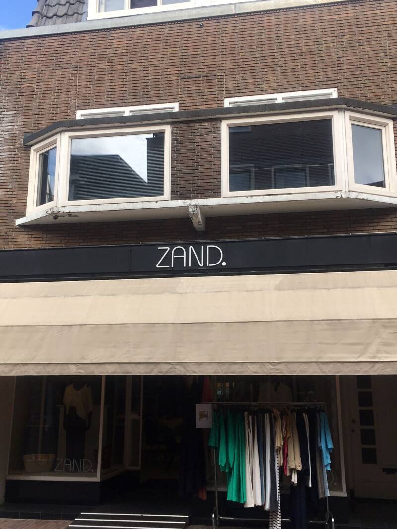 Hier tegenover damesmodezaak "Zand".