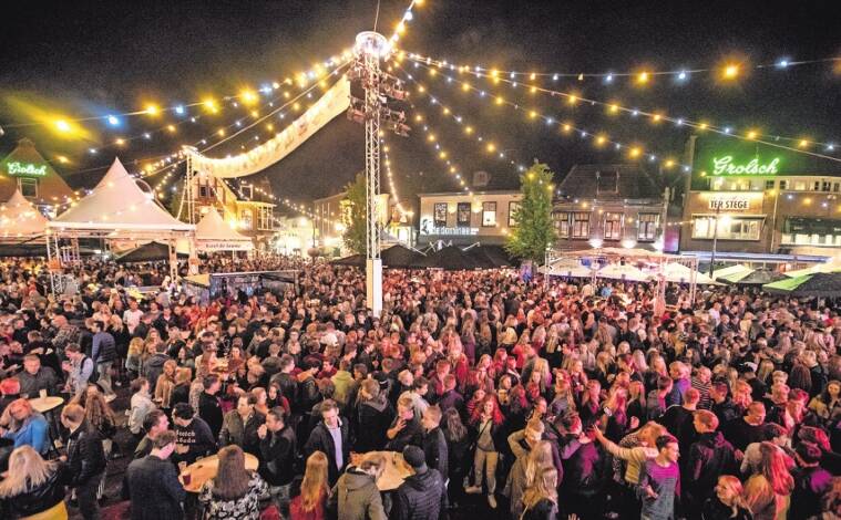 Flinke drukte op de laatste avond van de Boeskool is Los op de Groote Markt. Foto Robin Hilberink