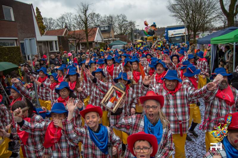 De praalwagens worden omringd door fraai uitgedorste loopgroepen.