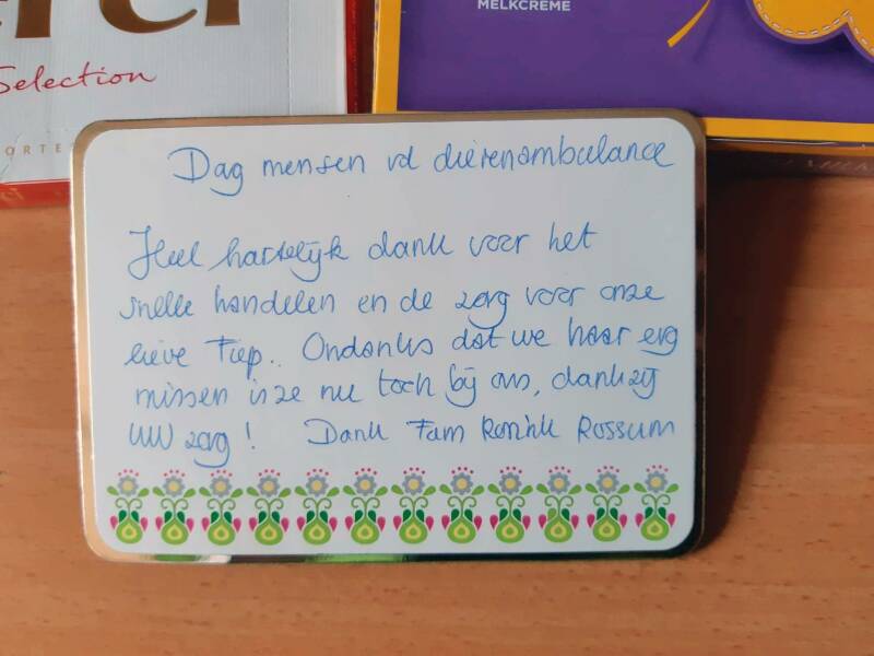 De dierenambulance wordt bemenst door vrijwilligers. Zoals bovenstaande foto's laten zien doen ze niet alleen dieren vervoeren, maar ook dierenleed oplossen.