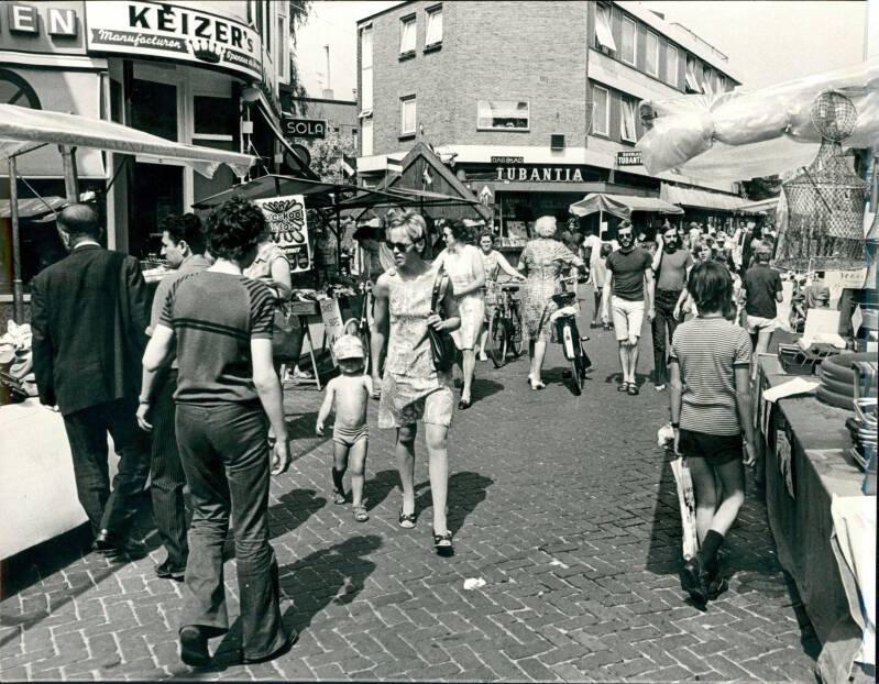 27 juni 1973 Grootestraat tijdens de Boeskool is Lös. Op de achtergrond Keizer manufacturen.