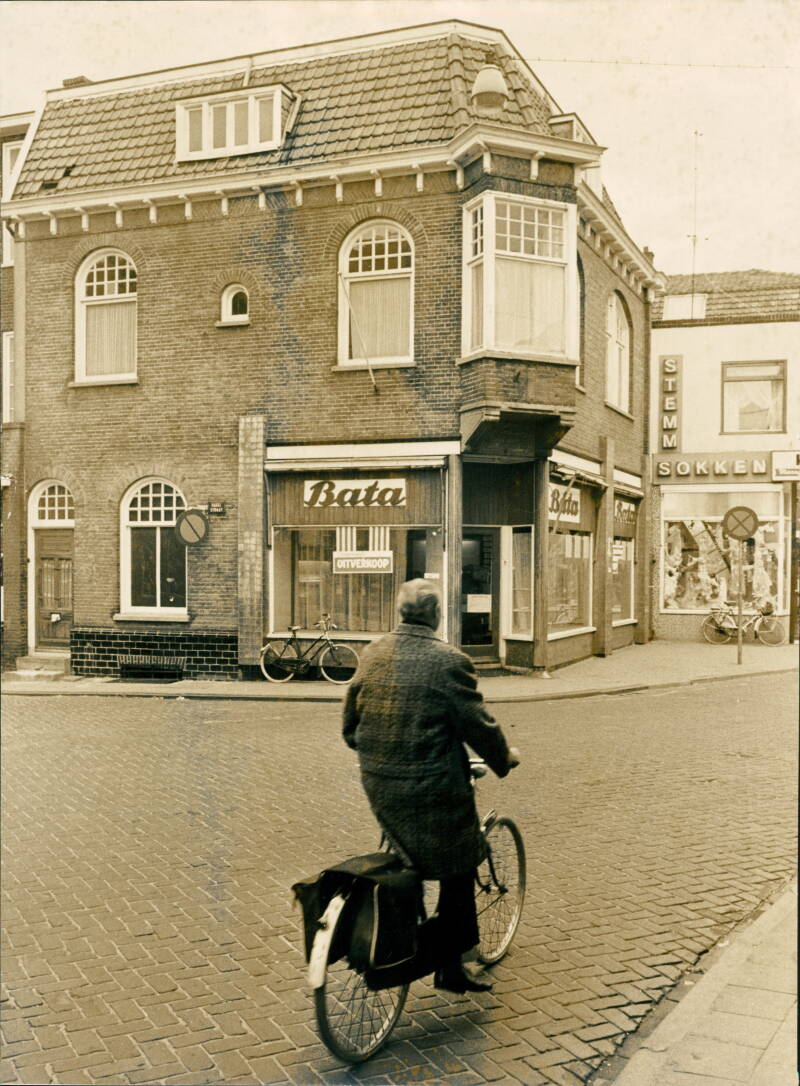 27 februari 1974 Hoek Nagelstraat/Grootestraat met de Bata, nu lunchroom "De Tijd".