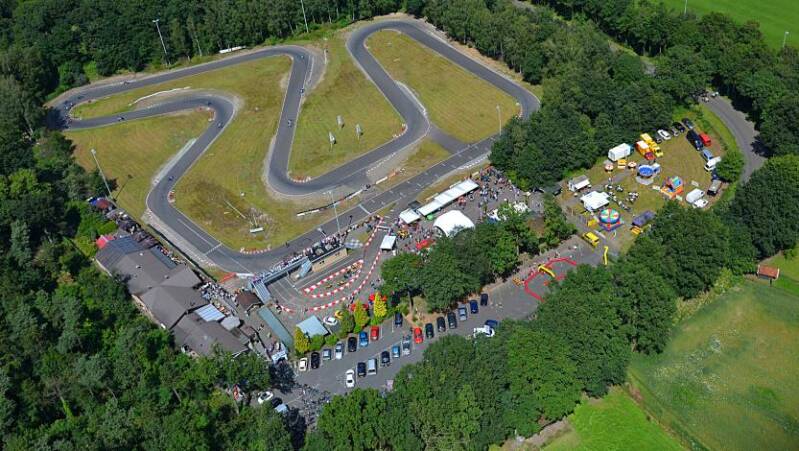 Een luchtopname van de huidige kartbaan, baanlengte 700 meter, baanbreedte 6 meter.