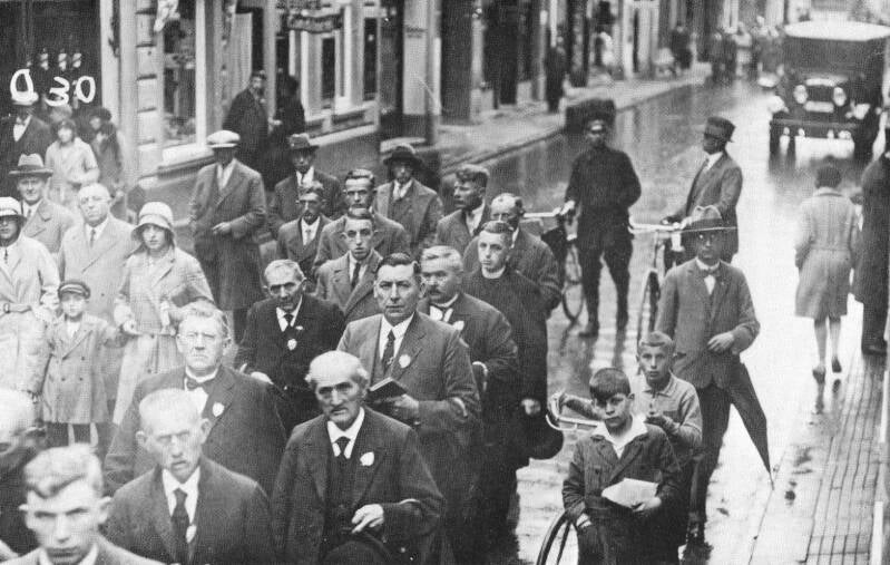 15 augustus 1937 Delegatie uit Oldenzaal met de Ned. R.K. Textiel Arbeiders Bond