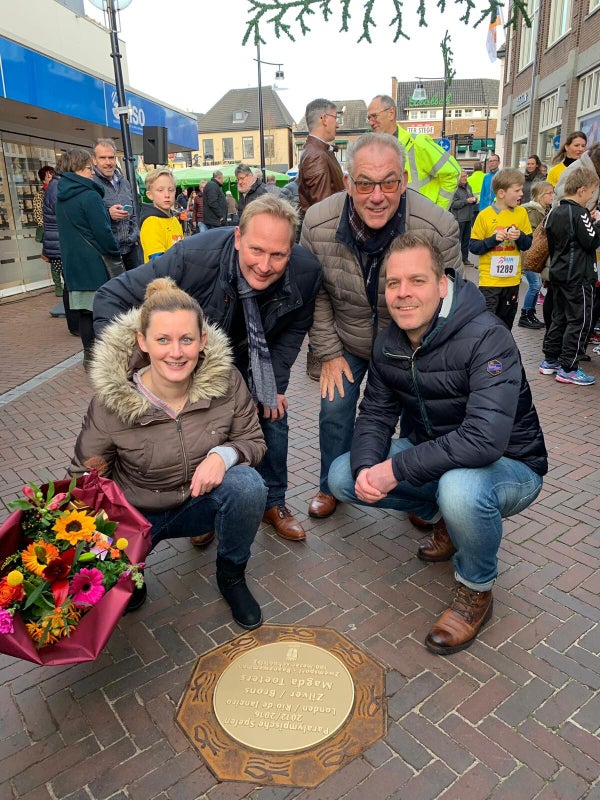 2018 Oldenzaal heeft de olympische heldendaden van Hennie Kuiper, Ellen van Langen, Sanne Wevers en Magda Toeters een blijvende plek gegeven met vier plaquettes in de Grootestraat in het centrum van Oldenzaal. (foto Robin Hilberink)