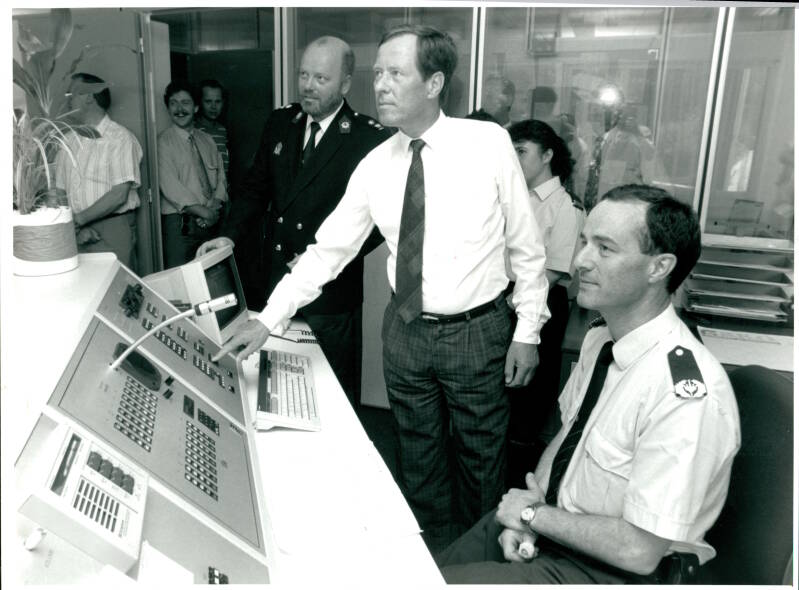 5 juli 1991 heropening politiebureau door burgemeester Nillesen (foto Dinand Buisma, Tubantia)