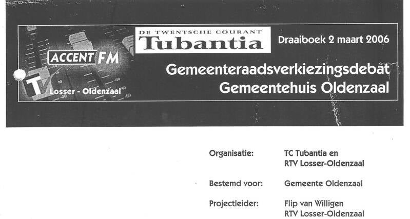 Jan Kamphuis, oprichter kabelkrant en Norbert Herman Hassing. Doel: financiële ondersteuning van de Oldenzaalse lokale omroep.