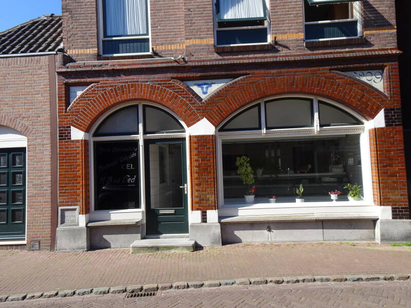 De slagerij van Leendert de Leeuw heette toen nog Vleeschhouwerij. Het was gevestigd aan de Waagstraat 6. Wat opvalt is het tweecijferige telefoonnummer. Tijdens de tweede wereldoorlog werd deze joodse familie door de nazi's vermoord.