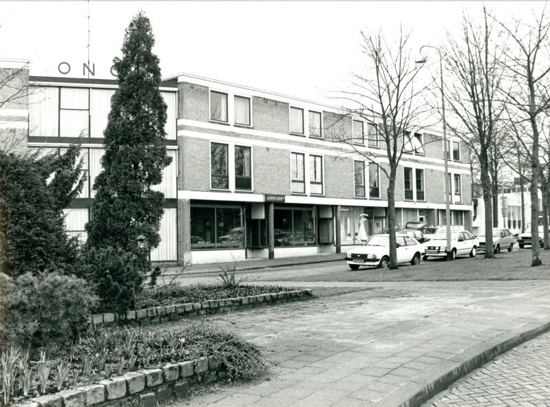 Op de foto van 5 mei 1987 zien we het stationsplein met kiosk.