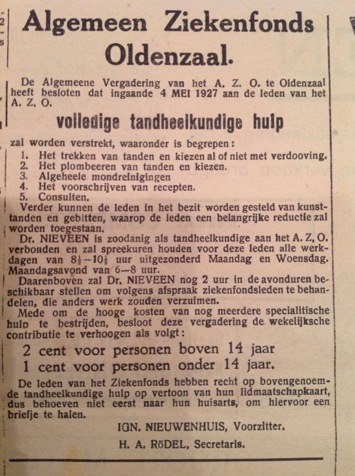 We gaan weer naar de overkant en zien dat naast de vroegere winkel van Grönefeld het kantoor van Algemeen Ziekenfonds Oldenzaal (AZO) was gevestigd.