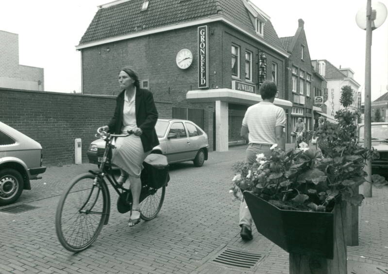 1 juli 1986 Grönefeld - RZT (Regionaal Ziekenfonds Twente) - schoenenzaak van Poorthuis en een slijterij.