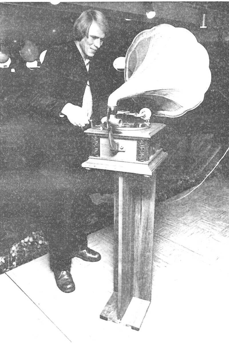 Wethouder Gerrit Oosting stelde in de recreatiezaal van “De Molenkamp” , door het opdraaien van een oude pathefoon, de radio-installatie ingebruik.